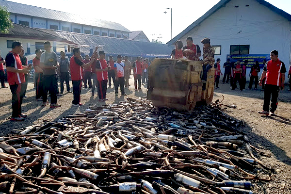 Pemusnahan dilakukan Kepala Kepolisian Resor (Kapolres) Bolaang Mongondow (Bolmong) AKBP Gani Siahaan dengan mengoperasikan kendaraan Tendem Roller atau alat berat penggilas aspal.