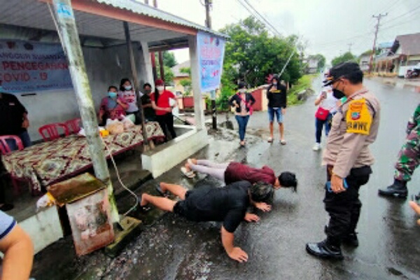 Masyarakat yang didapati tidak menggunakan masker diberi tindakan push-up dan diimbau untuk mematuhi protokol kesehatan agar tidak terpapar Covid-19 dengan menerapkan 5M antara lain memakai masker, menjaga jarak, mencuci tangan, menghindari kerumunan, mengurangi mobilitas, agar dengan demikian bisa menekan penyebaran Covid-19.