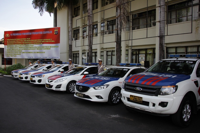 MANADO, Humas Polda Sulut – Kapolda Sulut Irjen Pol Drs. Wilmar Marpaung, SH, pimpin Apel Gelar Pasukan Operasi Patuh Samrat 2016, Selasa (13/09/2016) pagi, di halaman Mapolda Sulut. Apel ini ditandai dengan penyematan pita tanda operasi kepada tiga perwakilan personel dari TNI, Polri dan Jasa Raharja.