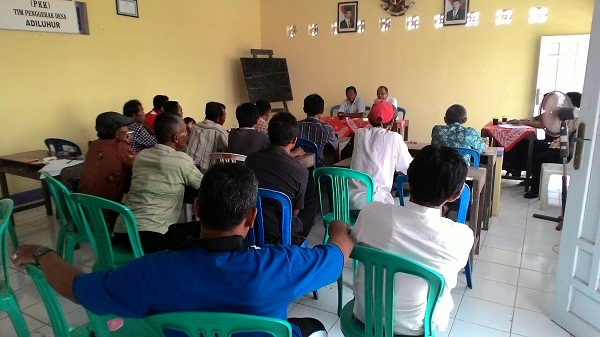 Brigadir Andi Haryono selaku Bhabinkamtibmas desa Adiluhur sigap dan merespon rencana kegiatan demo tersebut dan melaporkan kepada Kapolsek Adimulyo AKP Djoko Winursito dan oleh Kapolsek diperintahkan untuk segera menghubungi korlapnya. Dengan berbekal pengalaman sebagai seorang Bhabinkamtibmas, Brigadir Andi Haryono menghubungi korlap sdr Supardi dan menyampaikan hal ikhwal tentang tata cara demo utamanya adalah apabila melakukan demonstrasi harus ada ijin dari Kepolisian setempat, harus ada yang bertanggung jawaban, permasalahan atau tuntutan serta waktunya harus jelas, minimal 48 jam senelum melaksanakan demonstrasi harus sudah mengajukan ijin dan berbagai aturan-aturan lain yang berkaitan dengan demonstrasi. Disamping itu pula Kapolsek berkoordinasi dengan camat Adimulyo bapak Ir Suto Hadi Andoyo untuk memanggil kepala desa Adiluhur (sdr Samin) untuk dikondirmasi tentang rencana demontrasi tersebut. Atas berbagai saran dan pertimbangan dalam pertemuan antara korlap, kepala desa Adiluhur dan camat serta muspika Adimulyo, akhirnya sdr Supardi selaku korlap mengurungkan niatnya sehingga dirobah menjadi audiensi antara kepala desa dan warga desa Adiluhur dengan materi tentang hal-hal yang berkait dengan somisili kepala desa, pembangunan desa, transparansi penggunaan anggaran, serta dari warga masyarakat yang hadir hanya perwakilan dari tiap-tiap RT dan RW sejumlah 60 orang.