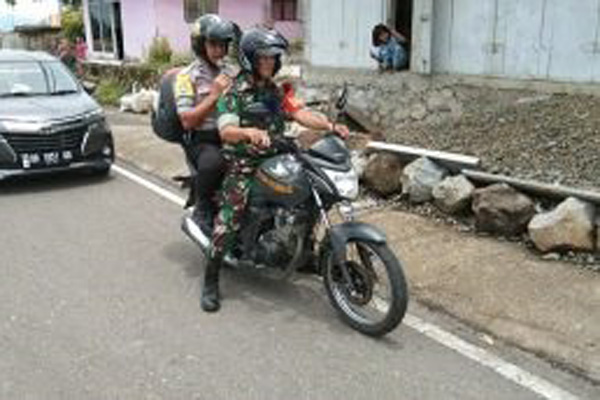 Keduanya berboncengan menggunakan sepeda motor, kemudian berhenti di lokasi-lokasi strategis sambil menyampaikan imbauan yang dipancarkan melalui pengeras suara.