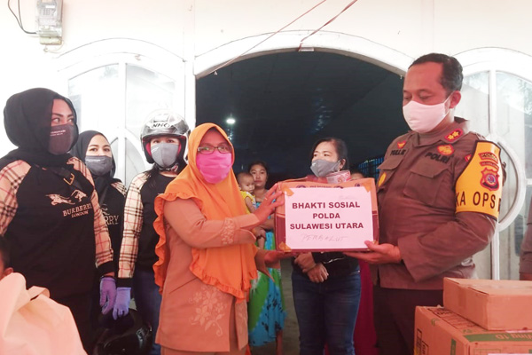 MANADO, Humas Polda Sulut – Kapolres Bolsel (Bolaang Mongondow Selatan), AKBP Yuli Kurnianto dan rombongan menempuh perjalanan darat sejauh 50 km dengan bersepeda motor demi menyalurkan bantuan dari Polda Sulut bagi korban bencana alam di Desa Milangodaa dan Pakuku Jaya, Kecamatan Tomini, Selasa (11/08/2020).