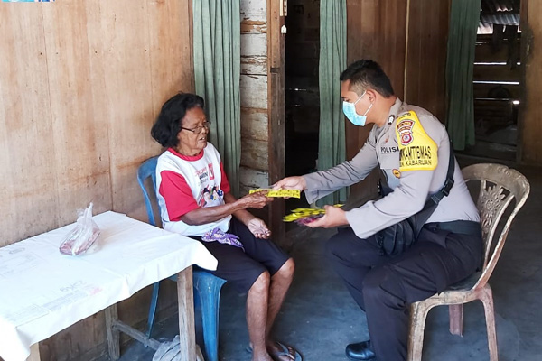 Dalam kunjungan pagi itu, Brigpol Andika mengajak masyarakat untuk turut memutus mata rantai penyebaran Virus Corona. “Di antaranya dengan rajin mencuci tangan, memakai masker jika beraktifitas di luar rumah, serta menghindari keramaian,” ujarnya.