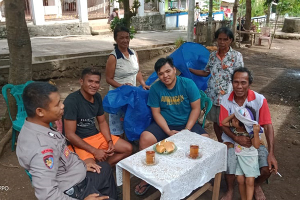 MANADO, Humas Polda Sulut – Bhabinkamtibmas Polsek Lembeh Selatan, Brigpol Laode menyambangi warga Dorbolang, Lembeh Selatan, Bitung, Kamis (13/02/2020) pagi.