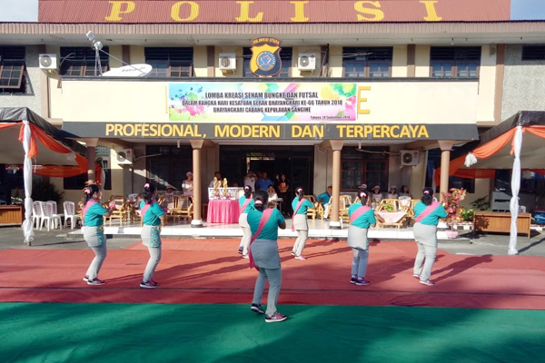 MANADO, Humas Polda Sulut – Dalam rangka memperingati dan merayakan Hari Kesatuan Gerak Bhayangkari (HKGB) yang ke-66, Bhayangkari Cabang Sangihe menyelenggarakan lomba tari kreasi Bungke, bertempat di halaman depan Mapolres Kepulauan Sangihe, Sabtu (29/9/2018).