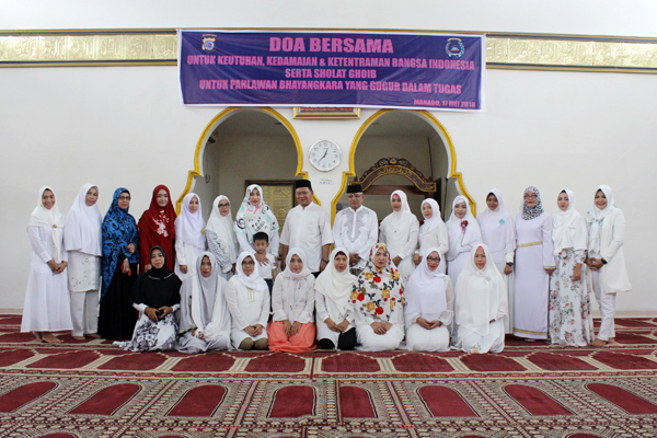 Khusus untuk Bhayangkari dan personil Polri yang beragam Nasrani, doa bersama digelar di aula Tribrata Polda Sulut, sedangkan Bhayangkari dan personil Polri yang Beragama Muslim dilaksanakan di Mesjid Nurul Jihad Polda sulut.