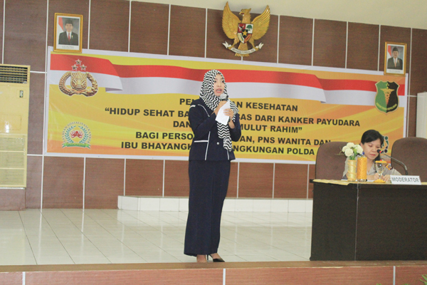 Sementara itu Wakapolda dalam sambutannya, mengucapkan terima kasih kepada panitia yang telah menggelar acara ini. “Penyuluhan kesehatan ini sangat bermanfaat bagi para peserta, khususnya Polwan, PNS wanita serta Bhayangkari karena dapat menambah wawasan tentang kesehatan, terlebih bisa mengetahui gejala maupun penanganan penyakit kanker,” ujarnya.