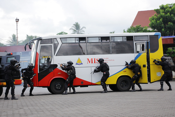 Dalam simulasi tersebut, personil Brimob menampilkan performa apik dalam menanggulangi aksi teror, membebaskan tawanan serta menjinakan bom aktif.