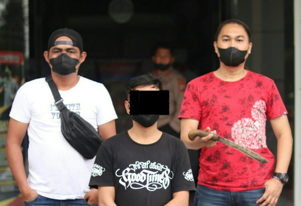 Korban yang terkejut langsung berbalik badan dan tersangka kembali menebas ke arah wajah korban namun ditangkis dengan tangan oleh korban.