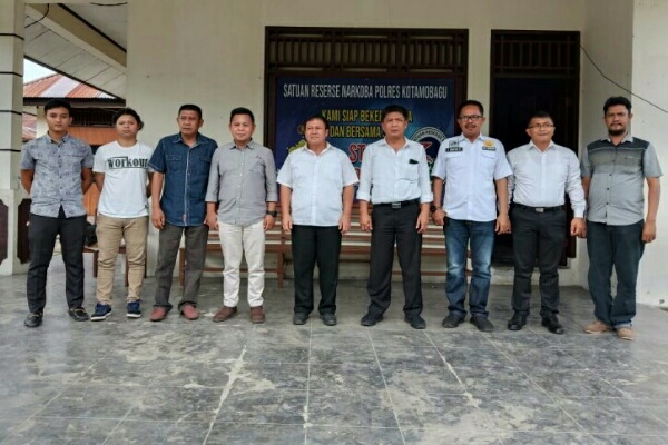Tim yang dipimpin AKBP Drs. Reno Bangkang langsung bertemu Kasat Resnarkoba Polres Kotamobagu AKP Noldie Rimporok, SE di kantornya.