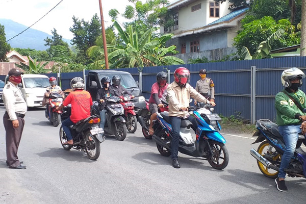 Kapolsek menerangkan, pendisiplinan dilakukan dengan menghentikan pengendara yang tidak memakai masker, kemudian diberikan sanksi sosial. “Sanksinya menyanyikan lagu kebangsaan Indonesia Raya atau mengucapkan Pancasila,” jelasnya.