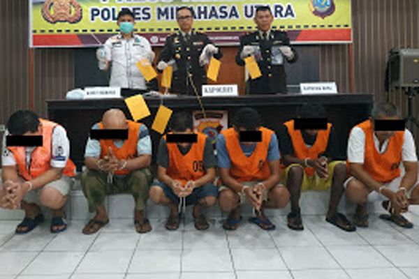 “Keenam tersangka yaitu AC (30), DB (39), AP (28), NL (46), KI (20) dan RP (35), seluruhnya warga Kecamatan Kema,” ujarnya, didampingi Kasatresnarkoba, AKP Hilman Muthalib dan Kapolsek Kema, Iptu Hendrik Rantung.