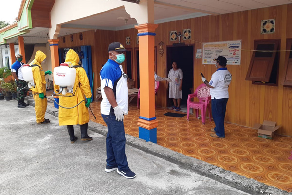 Kemudian dilanjutkan dengan penyemprotan disinfektan di rumah-rumah warga serta pemeriksaan suhu tubuh warga yang baru tiba di Miangas setelah melakukan perjalanan dari luar pulau.