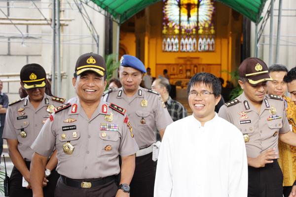 Tiba di gereja tersebut, Kapolda yang didampingi Kabid Humas, AKBP Ibrahim Tompo dan Wakapolresta Manado, AKBP Enggar Brotoseno, disambut oleh Pastor Frans Mandagi, Pr. beserta para pengurus gereja dan umat setempat. Terpantau, Kapolda melakukan pengecekan di luar dan di dalam lokasi gereja didampingi Pastor Frans.