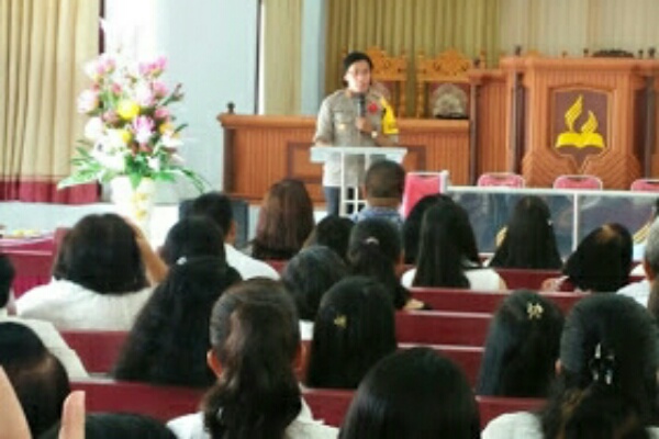MANADO, Humas Polda Sulut – Kapolres Minut AKBP Grace K. D. Rahakbau Sik, Msi, didampingi Kapolsek Kema Iptu Hendrik Rantung dan Bhabinkamtibmas Desa Makalisung Aiptu Iskandar Mokoagow, melakukan silaturahmi pada saat Ibadah Sabat Warga Desa Makalisung Kecamatan Kema, di Gereja Masehi Advent Hari Ke Tujuh, Sabtu (21/12/2019).