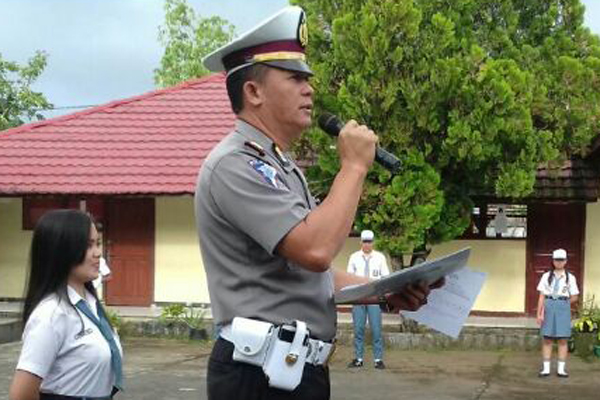 MANADO, Humas Polda Sulut – Kasat Lantas Polres Minahasa AKP Ferdinand Runtu menjadi Inspektur Upacara di SMA Negeri 2 Tondano, Kabupaten Minahasa, Senin (6/3/2017)pukul 07.00 wita.