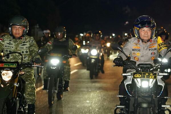 MANADO, Humas Polda Sulut – Kapolda Sulawesi Utara Irjen Pol Roycke Harry Langie bersama Pangdam XIII/Merdeka Mayjen TNI Mirza Agus didampingi Danrem 131/Santiago, Wakapolda Brigjen Pol Awi Setiyono dan sejumlah Pejabat Utama kembali melakukan patroli malam, jelang pergantian tahun, Rabu (31/12/2025).