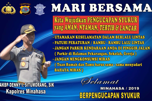 MANADO, Humas Polda Sulut – Menjelang perayaan Pengucapan Syukur tahun 2019 di wilayah Kabupaten Minahasa, Minggu (21/07) mendatang, Kapolres Minahasa, AKBP M. Denny Situmorang meminta masyarakat agar bekerjasama dengan pihak kepolisian, TNI, pemerintah daerah dan gereja untuk menjaga keamanan dan ketertiban lingkungan.