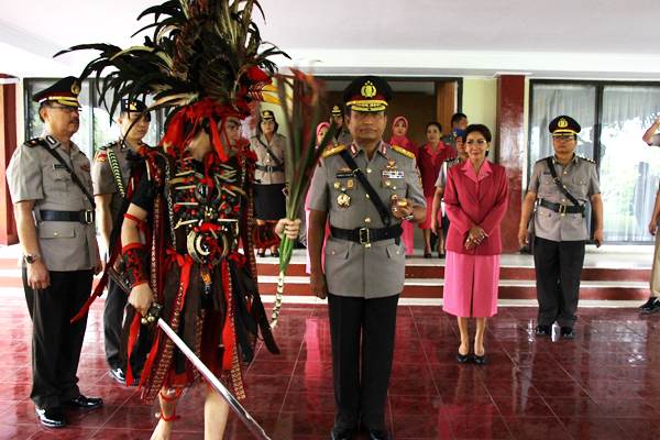 MANADO, Humas Polda Sulut – Berbagai atraksi menyambut kedatangan Kapolda Sulut Irjen Pol Drs. Bambang Waskito bersama rombongan saat menghadiri upacara pelantikan Bintara baru lulusan SPN Karombasan Manado, Selasa (7/3/2017).