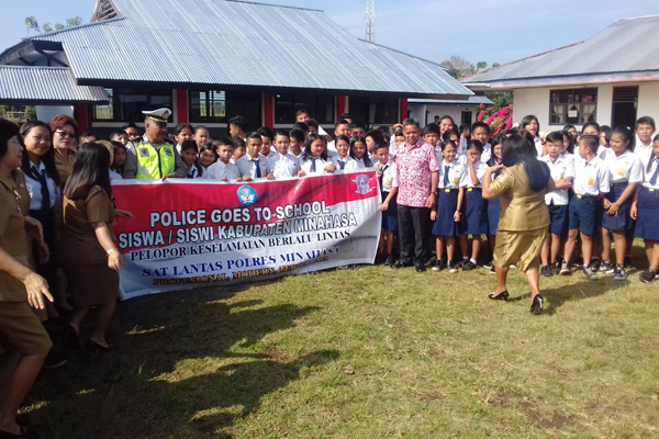 MANADO, Humas Polda Sulut – Satuan Lalulintas Polres Minahasa menggelar kegiatan Police Go To School di beberapa Sekolah di wilayah Kabupaten Minahasa, Senin (5/11/2018).