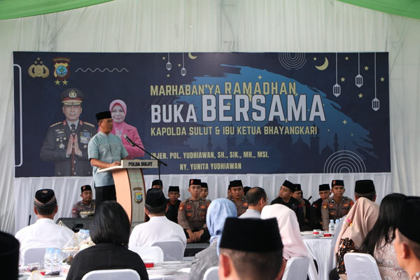 “Kegiatan buka puasa bersama ini juga momentum untuk meningkatkan persaudaraan sesama Forkopimda Sulut dan instansi terkait lainnya, serta meningkatkan moril anggota dan PNS Polri menuju Polri yang Presisi,” ucap Irjen Pol Yudhiawan.