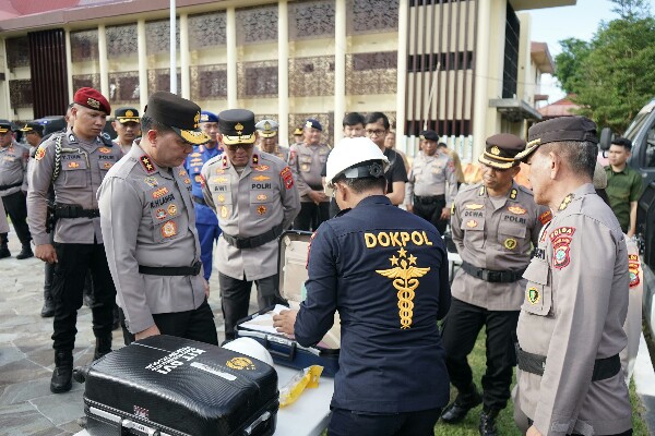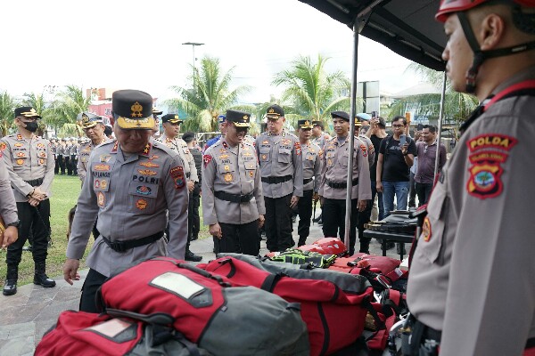 “Puji Tuhan, Syukur Alhamdulillah tadi kita melakukan inspeksi sekaligus pengecekan pasukan, peralatan ini dalam kondisi baik. Kita juga menyiapkan 372 personel untuk kesiapsiagaan penanggulangan bencana,” kata Kapolda.