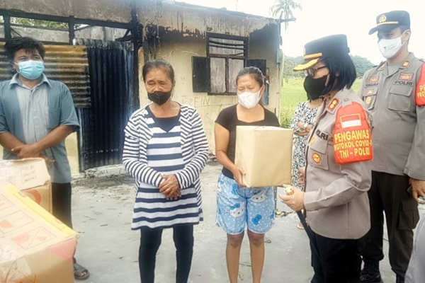 Pada kesempatan itu Kapolres juga menyerahkan beberapa paket bahan kebutuhan pokok kepada keluarga korban kebakaran.