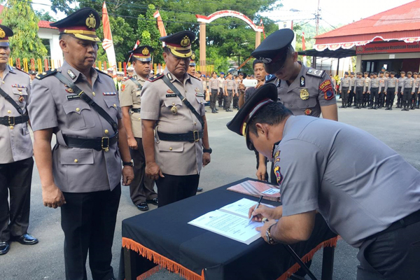 Upacara sertijab dilaksanakan di Lapangan Mapolres Kepulauan Sangihe, Rabu (21/8/2019) dipimpin langsung oleh Kapolres Kepl Sangihe AKBP Sudung F. Napitu, SIK.
