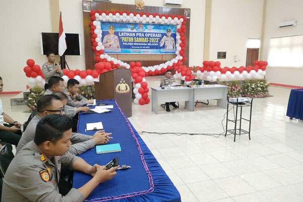 MANADO, Humas Polda Sulut – Kapolres Minahasa Selatan AKBP Feri Sitorus membuka Latihan Pra Operasi (Latpraops) Kepolisian Kewilayahan Patuh Samrat 2023, pada Jumat (7/7) pagi, di aula Mapolres.