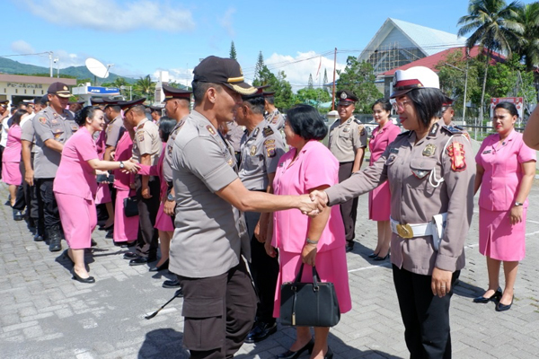 Hadir juga dalam upacara tersebut, Ketua Bhayangkari Cabang Minahasa Ny. Wina Situmorang, Wakapolres Minahasa Kompol Farly A Rewur, SH, MM, para Kabag dan Kasat Polres Minahasa serta seluruh personil Polres.