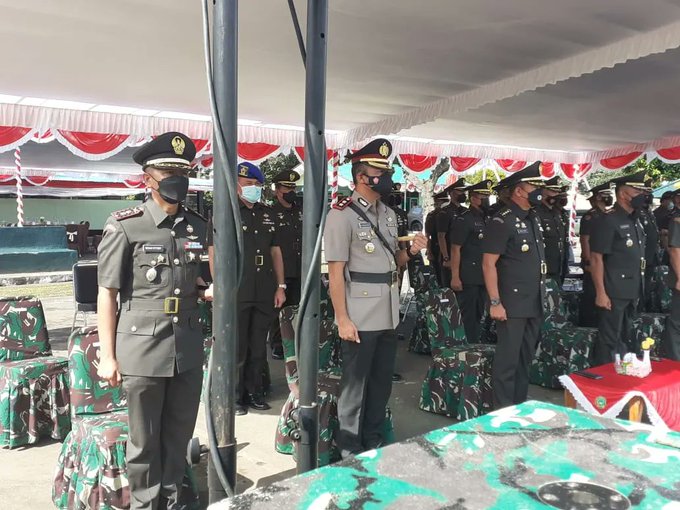 MANADO, Humas Polda Sulut – Kapolres Minsel AKBP C. Bambang Harleyanto menghadiri Upacara Penutupan Pendidikan Pertama Bintara TNI AD T.A. 2021 dilaksanakan di Secaba Rindam XIII/Mdk, Kelurahan Pondang, Kecamatan Amurang Timur, Kab. Minsel, Jumat (11/02/2022).