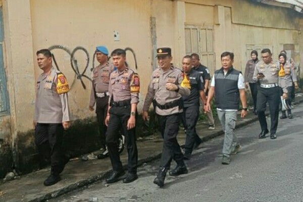 MANADO, Humas Polda Sulut – Kapolresta Manado Kombes Pol Irham bersama para Pejabat Utama (PJU) Polresta Manado melaksanakan patroli jalan kaki guna memastikan situasi keamanan dan ketertiban masyarakat (kamtibmas) tetap aman dan kondusif.