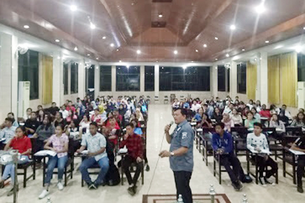 MANADO, Humas Polda Sulut – Kasat Resnarkoba Polres Bitung AKP Frelly Sumampow memberikan penyuluhan tentang bahaya narkoba di STIE Petra Bitung, Selasa (1/10/2019) sore.