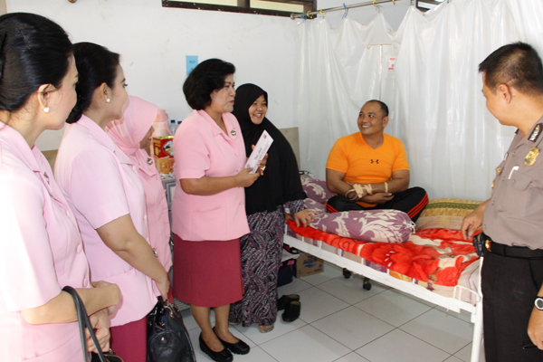 Rabu (4/5/2016) pagi, Ketua YKB Sulut Ny. Laura Wilmar Marpaung bersama Pengurus lainnya menyambangi Rumah Sakit Bhayangkara Karombasan, Manado