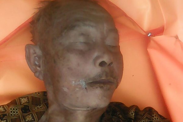 Ciri-ciri mayat, antara lain kulit sawo matang, hidung mancung, memakai topi/peci warna cokelat, kemeja batik lengan panjang warna cokelat, celana panjang warna hitam dan sandal jepit warna hitam-biru. Di dalam saku celana korban ditemukan dompet warna hitam, berisi uang sebesar Rp 200 ribu.