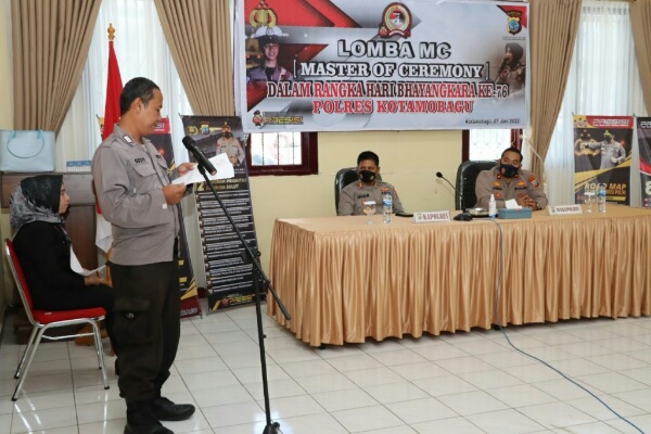 MANADO, Humas Polda Sulut – Polres Kotamobagu menggelar lomba pemandu acara atau Master of Ceremony (MC), di Mapolres Kotamobagu, Selasa (6/6/2022).