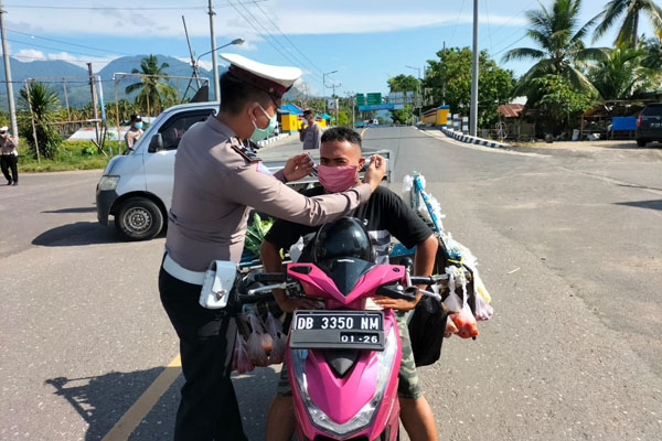 “Sedangkan bagi warga masyarakat baik pengendara maupun pejalan kaki yang kedapatan tidak memakai masker, kami berikan masker gratis yang wajib langsung dipakai demi mencegah penyebaran Covid-19,” ujar AKP Wungkana.