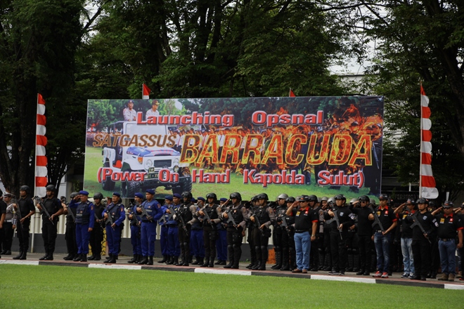 Kabid Humas Polda Sulut Kombes Pol Marjuki, SIK, MSi menjelaskan Tim Barracuda ini terdiri dari Sub-sub Satgassus seperti Brimob, Sabhara, Lalulintas, Reskrim, Polair serta satgas pendukung lainnya yang siap setiap saat apabila dibutuhkan.