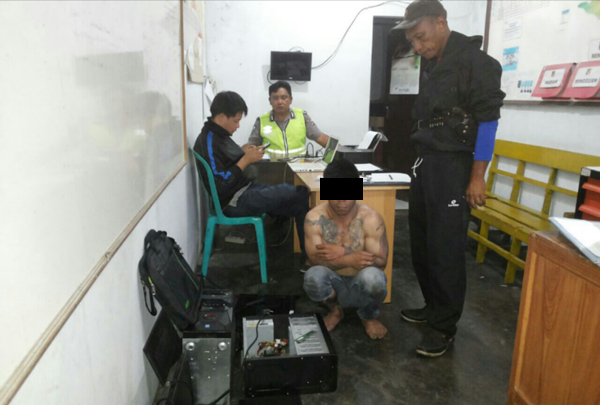 Hasilnya, petugas mendapati pelaku di atas loteng ruang guru dan kepala sekolah, beserta barang bukti 2 unit komputer dan keyboard, laptop 16 inch merk Acer, 2 kamera digital merk Canon dan Spectra dan monitor komputer ukuran 21 inch merk Lennovo.