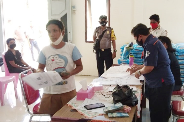 MANADO, Humas Polda Sulut – Penyaluran Bantuan Sosial Tunai (BST) di Kampung Makalehi Kecamatan Siau Barat Kabupaten Kepulauan Sitaro mendapat pengamanan aparat Kepolisian setempat, Kamis (18/6/2020).