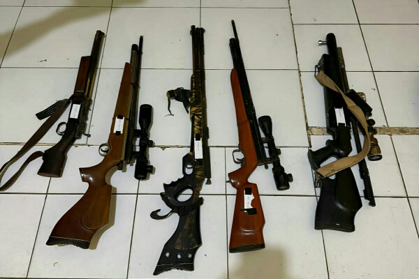 Dari lokasi penggeledahan, petugas menyita sedikitnya 5 unit senjata angin kaliber 4,5 mm sebagai barang bukti. Terduga pelaku kini telah diamankan untuk menjalani pemeriksaan lebih lanjut di Mapolda Sulut.
