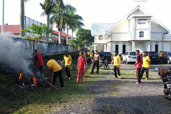 MANADO, Humas Polda Sulut – Personel Polres Minahasa Utara (Minut) dan Polsek jajaran melaksanakan kerja bakti bersama, di Gereja Amadea dan Mushola Arrahmah Mapolres Minut, Jum’at, (13/12/2019) pagi.