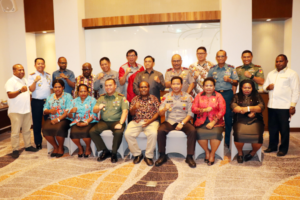 Pertemuan tersebut juga dihadiri Pemerintah Provinsi Sulut yang diwakili Kepala Kesbangpol Priovinsi Meky Onibala, Wakapolda Sulut, Danlantamal, Danrem 131/Santiago, Danlanudsri, Kabinda dan Kabakamla.