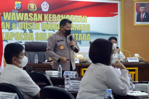 Dalam Seminar Wawasan Kebangsaan ini yang menjadi narasumber utama adalah Kapolda Sulawesi Utara Irjen Pol Mulyatno. Seminar dihadiri oleh Rektor Unsrat  Prof. Dr. Ir. Ellen Joan Kumaat M.Sc DEA, para Dekan, para Dosen Universitas Sam Ratulangi Manado dan para PJU Polda.
