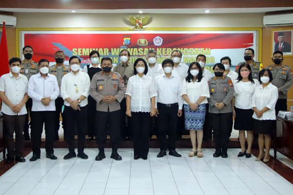 MANADO, Humas Polda Sulut – Polda Sulawesi Utara bekerja sama dengan Universitas Sam Ratulangi (Unsrat) menggelar Seminar Wawasan Kebangsaan yang digelar di aula Tribrata Polda Sulut, Selasa (15/3/2022).