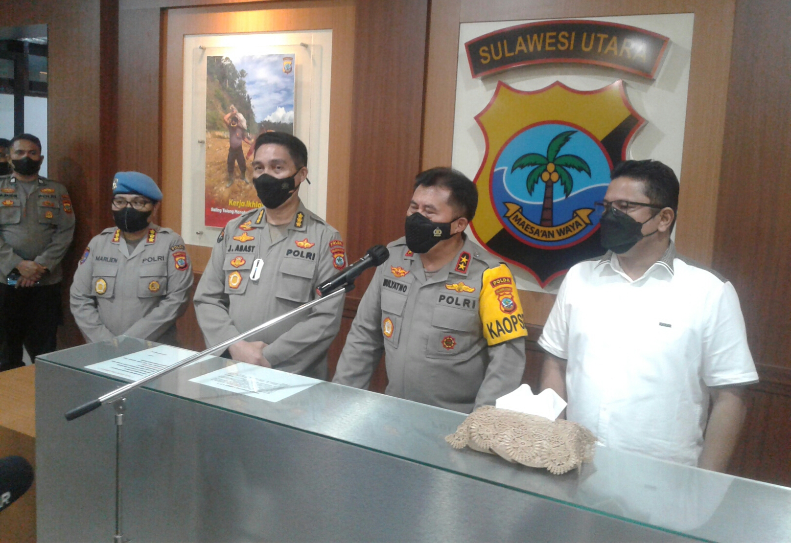 Kapolda Sulut Irjen Pol Mulyatno didampingi Kabid Humas Polda Sulut Kombes Pol Jules Abraham Abast dan Dirreskrimum Kombes Pol Gani Siahaan saat keterangan pers pada Jumat (31/12/2021) sore, membenarkan peristiwa dugaan penganiayaan tersebut.