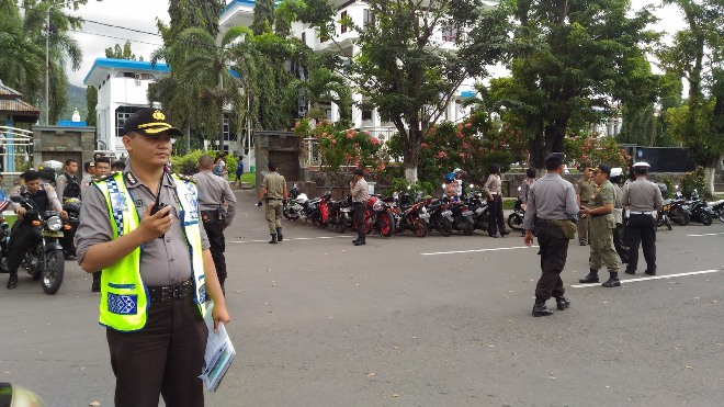 MANADO, Humas Polda Sulut – Sebanyak 336 personel Polres Bitung dibantu BKO Sat Brimob, Direktorat Polair, Tim Khusus Manguni Ditreskrimum Polda Sulut bersama TNI, Sat Pol PP dan Dinas Perhubungan, amankan jalannya upacara ‘Pinasungkulan Pinaesaan’ (tradisi adat ‘Tou Minahasa’ atau orang Minahasa), yang digelar di kantor Walikota Bitung, Rabu (27/07/2016) sekitar pukul 12:00 WITA.