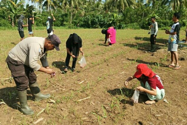Kegiatan dipimpin oleh Kanit Binmas Polsek Wori Aiptu Junaidy Bakary, bersama penyuluh pertanian LPTI Markus Masoara, anggota Polsek Wori, serta para petani Desa Talawaan Bantik.