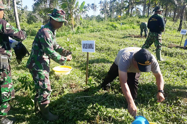 Setelah itu diikuti para peserta yang terdiri dari anggota TNI-Polri, tokoh masyarakat, pelajar, serta masyarakat. Adapun bibit pohon yang ditanam, antara lain nantu, pakoba, manggis, duku, serta durian.