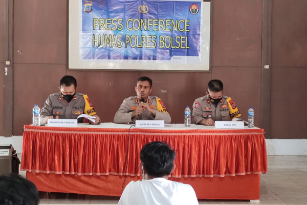 MANADO, Humas Polda Sulut – Polres Bolaang Mongondow Selatan (Bolsel) menggelar konferensi pers akhir tahun 2021, Jumat (31/12) pagi, di aula Mapolres setempat.